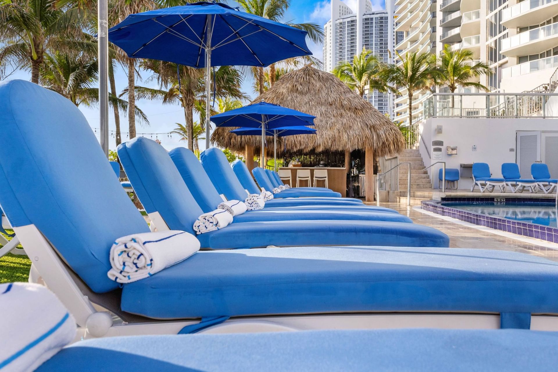 During your stay, your daily resort fee includes beach umbrellas and lounging chairs so you can enjoy our beautiful beachfront.